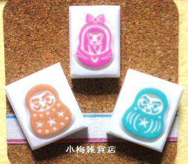 サイズは 達磨さんが約2.5cm×2.0cm、 姫ちゃんが約2.4cm×1.8cm。
