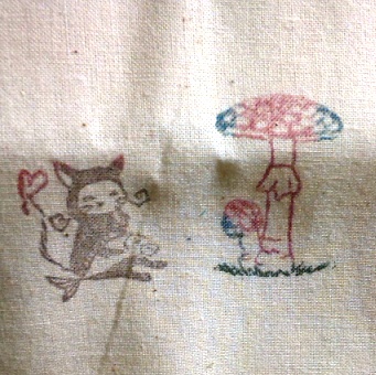 最後に自分で作ったベニテングちゃんはんこと持参した自分名刺用のにゃんこはんこをエコバッグにコラボ押し。