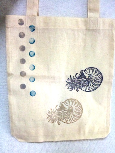 上のオウム貝図案のビッグサイズ版を作りました、そっちはエコバッグに使用。