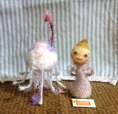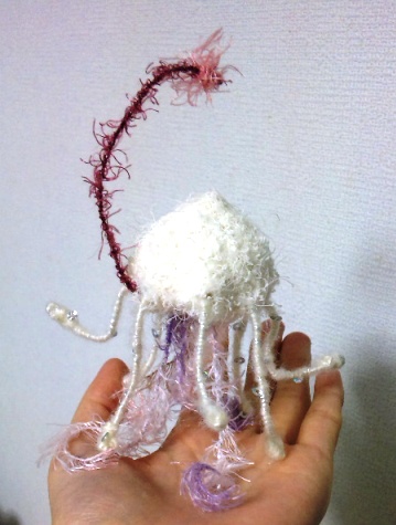 先日月箱さんに納品した羊毛の手乗りクラゲとはぜんっぜん違って可愛い系ではないんですよね~(羊毛クラゲも頭とんがりな妖精ちゃんも売れたとのお知らせをいただきました、もう月箱さんにはおりません)