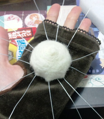 月箱さんには消しはんだけを置くつもりだったので箱の高さがそんなに無くても大丈夫、と思い今の箱を借りたんですが、やはり箱内に変化があった方がいいかもしれぬ、やはり羊毛作品も持っていこう・・・と、そうすると今度は高さ制限がある!ならば「あまり作ったことはないけど箱に収まるような小さいマスコット系を作ってみよう・・・」と挑戦。