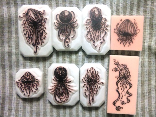 こちらでの販売用消しゴムはんこ「クラゲ」達、やっとご用意できました。