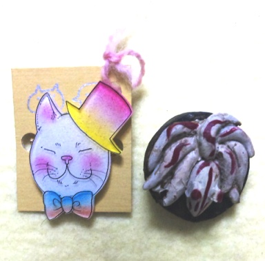 大好きな粘土作家ムジナさんのブースでお友達のゆうさんもカワユイブローチを出しており、お友達同士でこんな良い作品を作るとは、なんなのかしらこの人たち!ムキー、素敵じゃないの!! というお二人です。