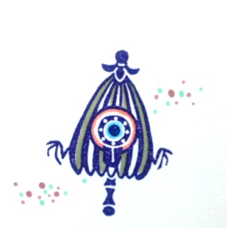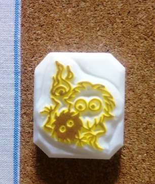 それは怖めでクールな感じの図案が描けないからです、基本的にモノノケはんこは「ネタ系」が多いです、それもクールな自分ではないからなのです。