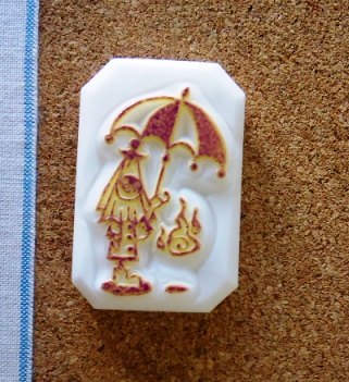 このカッパくんには artnic の 28・PACIFIC を使っています、最初の頃は問題無かったんですが最近インクが「とぶ」というか消しゴムの印面前面にきちんと付かず水玉状に分離してしまい押すと水と混じったような滲みが出てくるようになりました、なんでだろう?