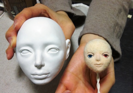 その時私が作っていた子がちょうど顔だけ出来上がった状態だったので友人の原型と一緒に写真を撮りました。