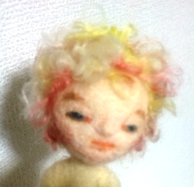 以前途中まで作ってしばらく放置しておいた羊毛人形(こんな放置プレイばかりしている・・・) こけしっ子のコケっぴーに髪の毛を付けました。