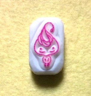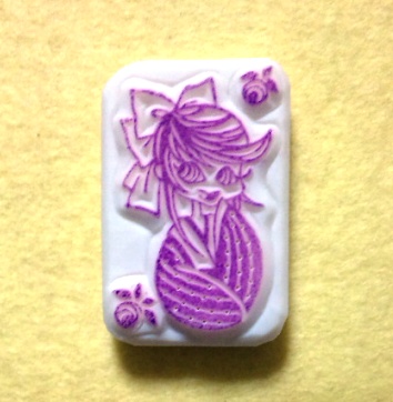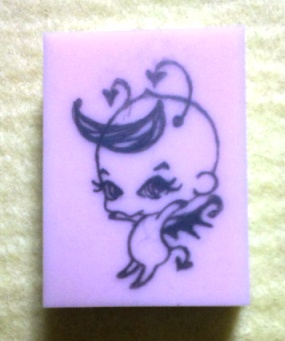 とっても久しぶりに普通の女の子(意地悪顔だけど)の消しはんを彫りました。