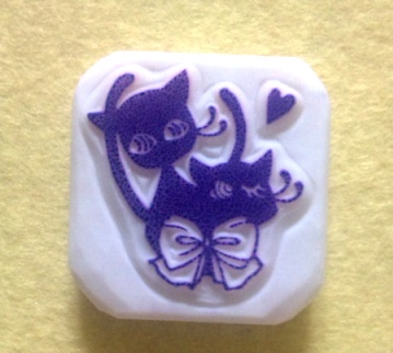 先日彫った「連らなりねこ」の図案をちょっと弄ってコンパクトサイズの黒ねこはんこを作ってみました。