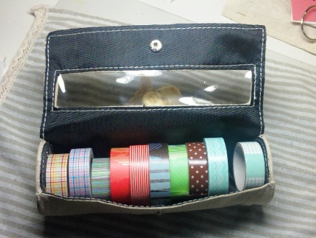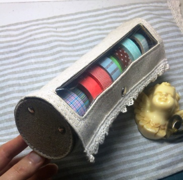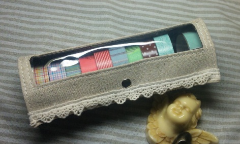 缶や箱だと中身が見えなくなりますがこれなら透明ビニール部分から中身(模様)が見えるしペンケース自体のデザインが可愛いのでその辺に置いといてもなんとなくそれなりに見えるというか・・・(笑)
