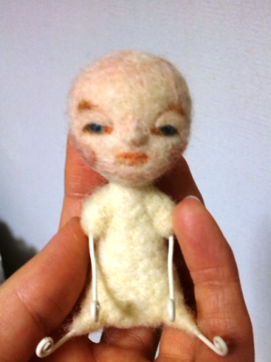 もう数カ月前に作ってこの後どう詰めていけばいいか迷い中の羊毛人形ちゃん。
